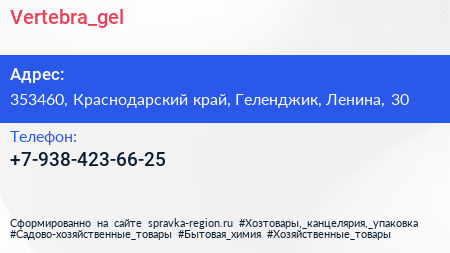 Vertebra_gel по адресу 353460, Краснодарский край, Геленджик, Ленина, 30 в дальнейшем Организация, размещена в следующих категориях: