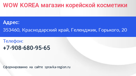 WOW KOREA, магазин корейской косметики по адресу 353460, Краснодарский край, Геленджик, Горького, 20 в дальнейшем Организация, размещена в следующих категориях: