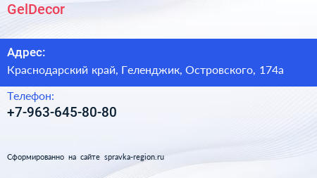 GelDecor по адресу Краснодарский край, Геленджик, Островского, 174а в дальнейшем Организация, размещена в следующих категориях: