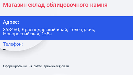 Магазин-склад облицовочного камня по адресу 353460, Краснодарский край, Геленджик, Новороссийская, 158а в дальнейшем Организация, размещена в следующих категориях: