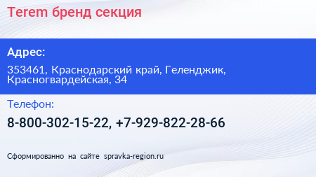 Terem, бренд-секция по адресу 353461, Краснодарский край, Геленджик, Красногвардейская, 34 в дальнейшем Организация, размещена в следующих категориях: