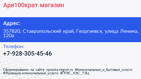 Ари100крат, магазин по адресу 357820, Ставропольский край, Георгиевск, улица Ленина, 120а в дальнейшем Организация, размещена в следующих категориях: