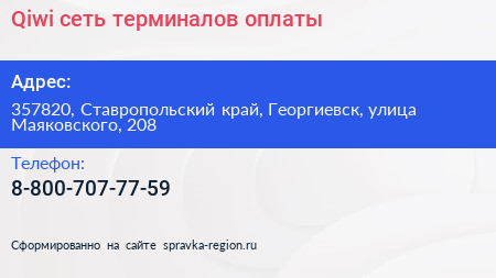 Qiwi, сеть терминалов оплаты по адресу 357820, Ставропольский край, Георгиевск, улица Маяковского, 208 в дальнейшем Организация, размещена в следующих категориях: