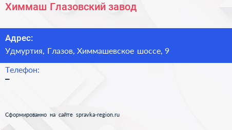 Химмаш, Глазовский завод по адресу Удмуртия, Глазов, Химмашевское шоссе, 9 в дальнейшем Организация, размещена в следующих категориях: