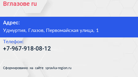 Вглазове.ru по адресу Удмуртия, Глазов, Первомайская улица, 1 в дальнейшем Организация, размещена в следующих категориях: