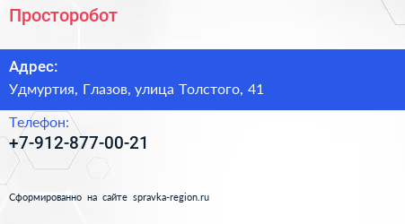 Просторобот по адресу Удмуртия, Глазов, улица Толстого, 41 в дальнейшем Организация, размещена в следующих категориях: