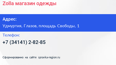 Zolla, магазин одежды по адресу Удмуртия, Глазов, площадь Свободы, 1 в дальнейшем Организация, размещена в следующих категориях: