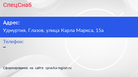 СпецСнаб по адресу Удмуртия, Глазов, улица Карла Маркса, 15а в дальнейшем Организация, размещена в следующих категориях: