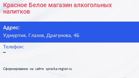 Красное & Белое, магазин алкогольных напитков по адресу Удмуртия, Глазов, Драгунова, 4Б в дальнейшем Организация, размещена в следующих категориях: