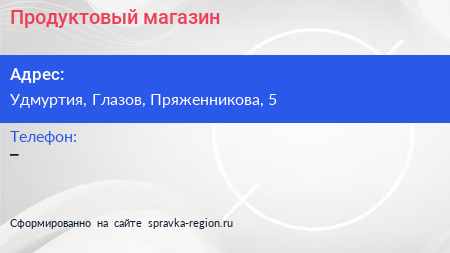Продуктовый магазин по адресу Удмуртия, Глазов, Пряженникова, 5 в дальнейшем Организация, размещена в следующих категориях: