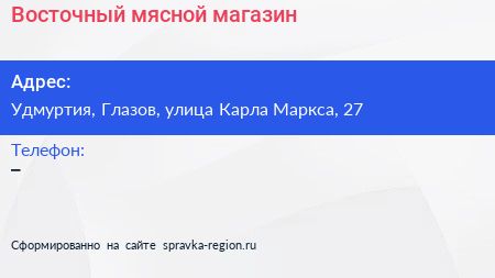 Восточный, мясной магазин по адресу Удмуртия, Глазов, улица Карла Маркса, 27 в дальнейшем Организация, размещена в следующих категориях: