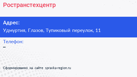 Ространстехцентр по адресу Удмуртия, Глазов, Тупиковый переулок, 11 в дальнейшем Организация, размещена в следующих категориях: