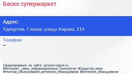 Баско, супермаркет по адресу Удмуртия, Глазов, улица Кирова, 114 в дальнейшем Организация, размещена в следующих категориях: