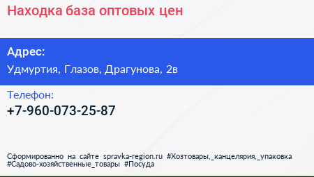 Находка, база оптовых цен по адресу Удмуртия, Глазов, Драгунова, 2в в дальнейшем Организация, размещена в следующих категориях: