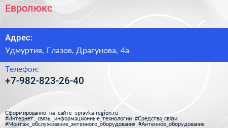 Евролюкс по адресу Удмуртия, Глазов, Драгунова, 4а в дальнейшем Организация, размещена в следующих категориях: