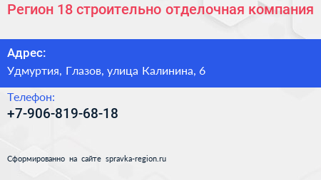Регион-18, строительно-отделочная компания по адресу Удмуртия, Глазов, улица Калинина, 6 в дальнейшем Организация, размещена в следующих категориях:
