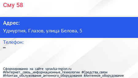 Сму-58 по адресу Удмуртия, Глазов, улица Белова, 5 в дальнейшем Организация, размещена в следующих категориях: