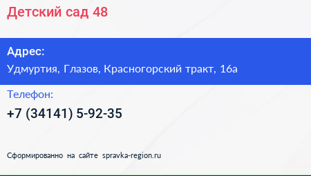 Детский сад №48 по адресу Удмуртия, Глазов, Красногорский тракт, 16а в дальнейшем Организация, размещена в следующих категориях: