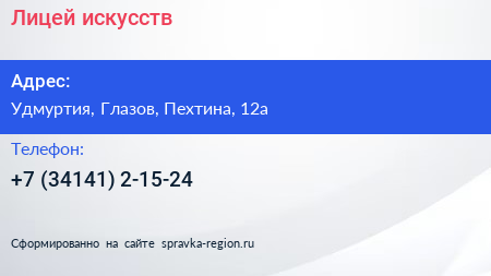 Лицей искусств по адресу Удмуртия, Глазов, Пехтина, 12а в дальнейшем Организация, размещена в следующих категориях: