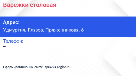 Варежки, столовая по адресу Удмуртия, Глазов, Пряженникова, 6 в дальнейшем Организация, размещена в следующих категориях: