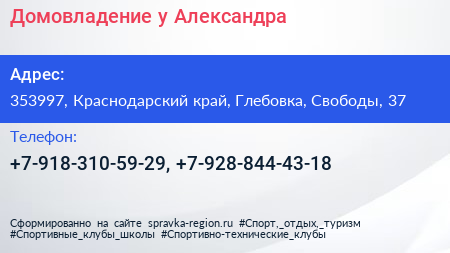 Домовладение у Александра по адресу 353997, Краснодарский край, Глебовка, Свободы, 37 в дальнейшем Организация, размещена в следующих категориях: