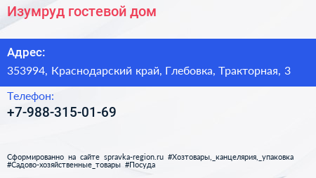 Изумруд, гостевой дом по адресу 353994, Краснодарский край, Глебовка, Тракторная, 3 в дальнейшем Организация, размещена в следующих категориях: