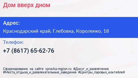 Дом вверх дном по адресу Краснодарский край, Глебовка, Короленко, 18 в дальнейшем Организация, размещена в следующих категориях: