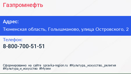 Газпромнефть по адресу Тюменская область, Голышманово, улица Островского, 2 в дальнейшем Организация, размещена в следующих категориях: