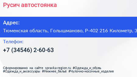 Русич, автостоянка по адресу Тюменская область, Голышманово, Р-402 216 Километр, 3 в дальнейшем Организация, размещена в следующих категориях: