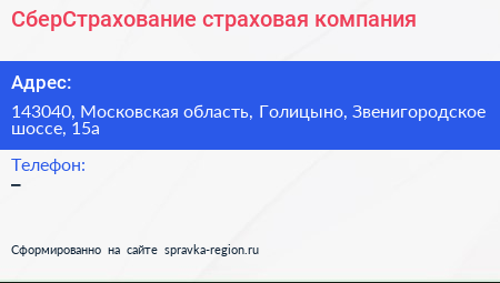 СберСтрахование, страховая компания по адресу 143040, Московская область, Голицыно, Звенигородское шоссе, 15а в дальнейшем Организация, размещена в следующих категориях: