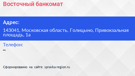 Восточный, банкомат по адресу 143041, Московская область, Голицыно, Привокзальная площадь, 1а в дальнейшем Организация, размещена в следующих категориях: