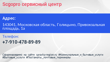 Scgopro, сервисный центр по адресу 143041, Московская область, Голицыно, Привокзальная площадь, 1а в дальнейшем Организация, размещена в следующих категориях: