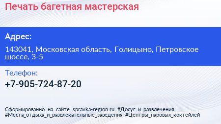 Печать, багетная мастерская по адресу 143041, Московская область, Голицыно, Петровское шоссе, 3-5 в дальнейшем Организация, размещена в следующих категориях: