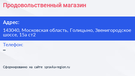 Продовольственный магазин по адресу 143040, Московская область, Голицыно, Звенигородское шоссе, 15а ст2 в дальнейшем Организация, размещена в следующих категориях: