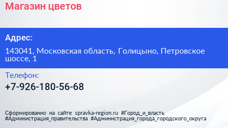 Магазин цветов по адресу 143041, Московская область, Голицыно, Петровское шоссе, 1 в дальнейшем Организация, размещена в следующих категориях:
