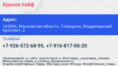 Крыши лайф по адресу 143041, Московская область, Голицыно, Владимирский проспект, 2 в дальнейшем Организация, размещена в следующих категориях:
