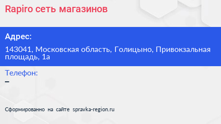 Rapiro, сеть магазинов по адресу 143041, Московская область, Голицыно, Привокзальная площадь, 1а в дальнейшем Организация, размещена в следующих категориях: