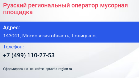 Рузский региональный оператор, мусорная площадка по адресу 143041, Московская область, Голицыно, в дальнейшем Организация, размещена в следующих категориях:
