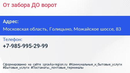 От забора, ДО ворот! по адресу Московская область, Голицыно, Можайское шоссе, 83 в дальнейшем Организация, размещена в следующих категориях:
