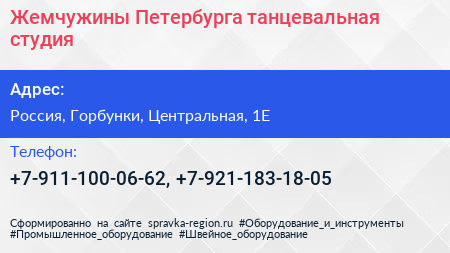 Жемчужины Петербурга, танцевальная студия по адресу Дом культуры, Центральная улица, Низино, Низинское сельское поселение, Ломоносовский район, Ленинградская область, Северо-Западный федеральный округ, 188501, Россия в дальнейшем Организация, размещена в следующих категориях: