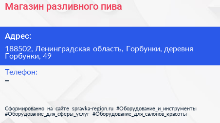 Магазин разливного пива по адресу 188502, Ленинградская область, Горбунки, деревня Горбунки, 49 в дальнейшем Организация, размещена в следующих категориях: