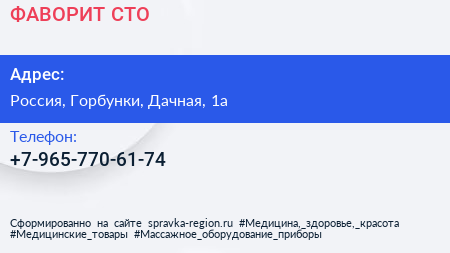ФАВОРИТ, СТО по адресу Петергоф Моторс, Дачная улица, Сашино, Низинское сельское поселение, Ломоносовский район, Ленинградская область, Северо-Западный федеральный округ, 188501, Россия в дальнейшем Организация, размещена в следующих категориях: