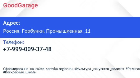 GoodGarage по адресу СТО Лидер, Верхняя улица, Низино, Низинское сельское поселение, Ломоносовский район, Ленинградская область, Северо-Западный федеральный округ, 188501, Россия в дальнейшем Организация, размещена в следующих категориях: