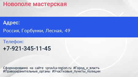 Новополе, мастерская по адресу Истринская улица, Новополье, Горбунковское сельское поселение, Ломоносовский район, Ленинградская область, Северо-Западный федеральный округ, 198515, Россия в дальнейшем Организация, размещена в следующих категориях: