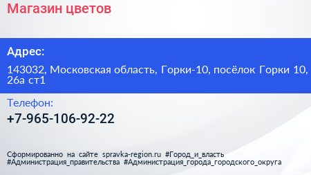 Магазин цветов по адресу 143032, Московская область, Горки-10, посёлок Горки 10, 26а ст1 в дальнейшем Организация, размещена в следующих категориях: