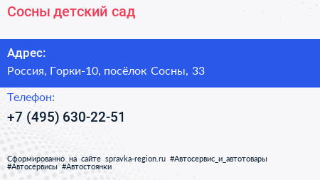 Для связи с организацией воспользуйтесь номером телефона: +7 (495) 630-22-51. Пн: c 07:00-20:00, Вт: c 07:00-20:00, Ср: c 07:00-20:00, Чт: c 07:00-20:00, Пт: c 07:00-20:00, Сб: выходной, Вс: выходной, вы можете обратиться в эту организацию.