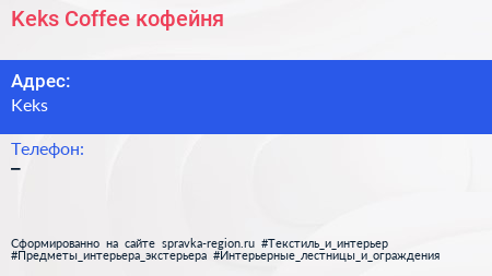 Keks & Coffee, кофейня по адресу Keks в дальнейшем Организация, размещена в следующих категориях: