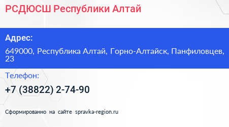 PСДЮСШ Республики Алтай по адресу 649000, Республика Алтай, Горно-Алтайск, Панфиловцев, 23 в дальнейшем Организация, размещена в следующих категориях: