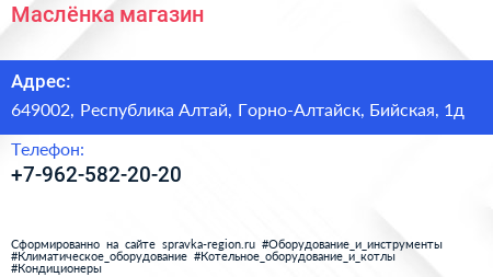Маслёнка, магазин по адресу 649002, Республика Алтай, Горно-Алтайск, Бийская, 1д в дальнейшем Организация, размещена в следующих категориях: