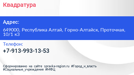 Квадратура по адресу 649000, Республика Алтай, Горно-Алтайск, Проточная, 10/1 к3 в дальнейшем Организация, размещена в следующих категориях: